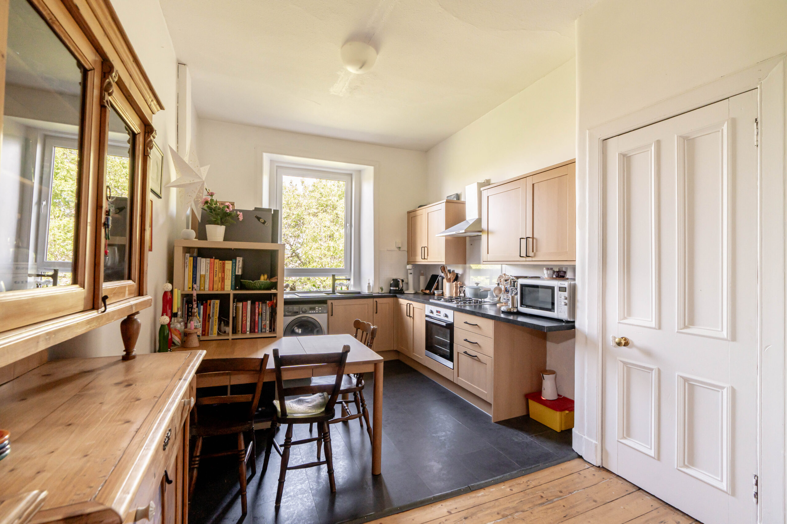 We are delighted to bring this charming one bedroom flat in the much sought after Dalry area of the city. Offering leafy views and only a few minutes walk from the West End of Edinburgh this is must view property. The property comprises of two double bedrooms, a large kitchen/dining area, and an impressive living room with fire place which alternatively may be used a the second double bedroom. There is a generous family bathroom, gas central heating and shared rear garden. Dalry’s affordability, accessibility, and vibrant cultural scene have made it a popular choice for young professionals to live. Nearby there is plenty of open green space to be enjoyed. The Murieston Park is behind the flat, with the two Harrison Parks being a five minute walk away. Dalry boasts an array of dining options, including trendy cafes, traditional bars, and diverse restaurants. It’s also very close to entertainment venues and facilities located at Fountain Park.